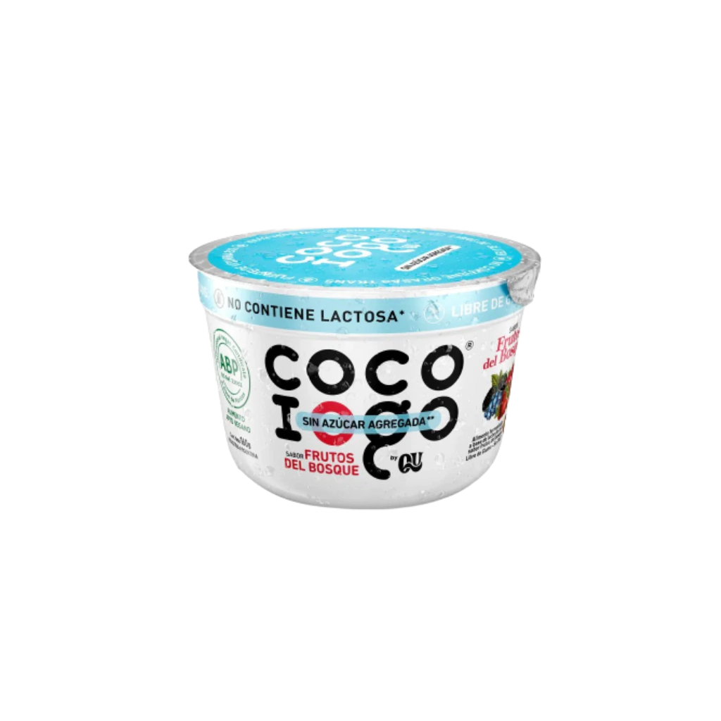 Yogurt elaborado a base de leche de coco con frutos del bosque, sin azúcar añadida, sin gluten, apto veganos, libre de lactosa y soja.