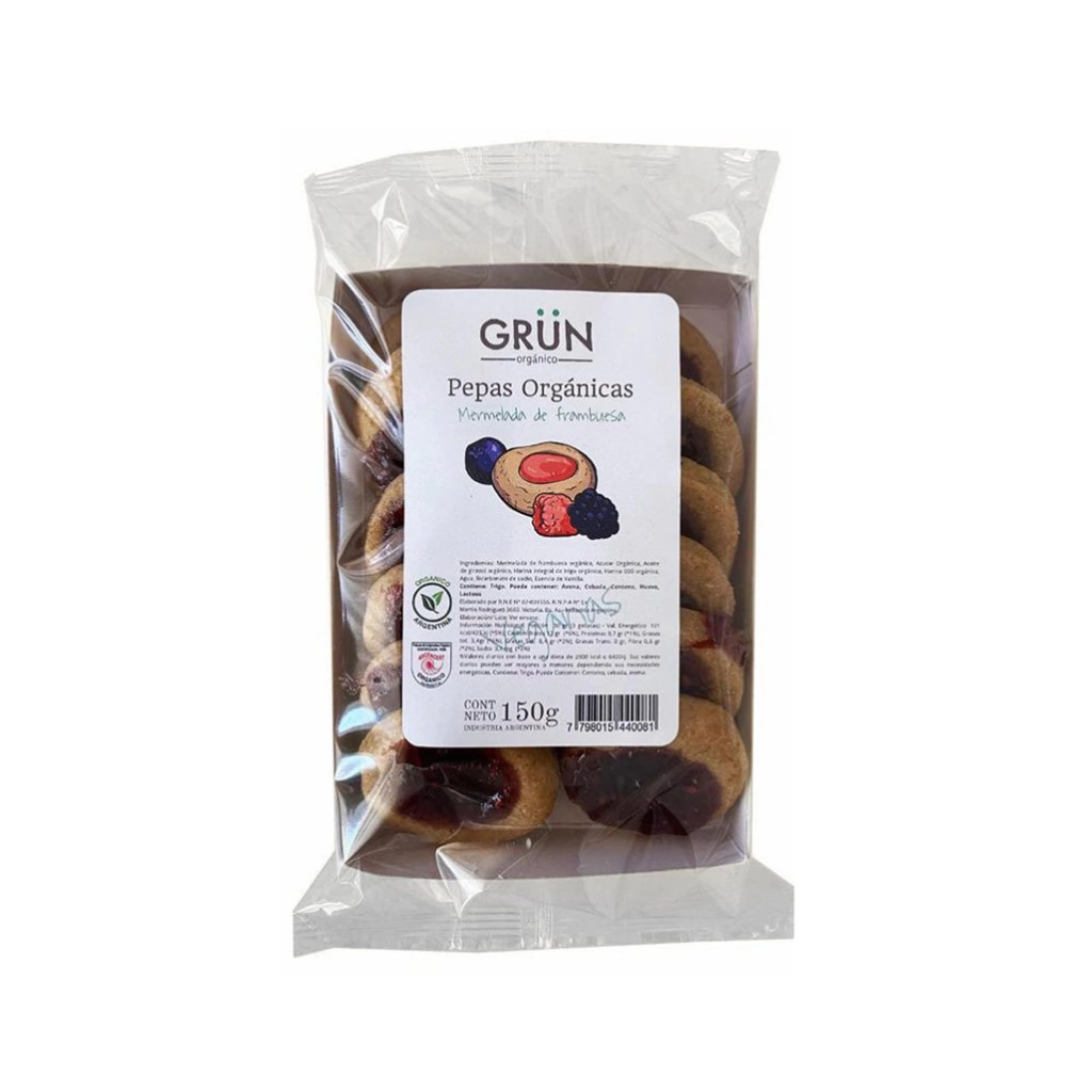 Ingredientes: Mermelada de frambuesa orgánica, azúcar orgánica, aceite de girasol orgánico alto oleico, harina integral orgánica de trigo, harina orgánica de trigo 000, agua, bicarbonato de sodio y esencia de vainilla.